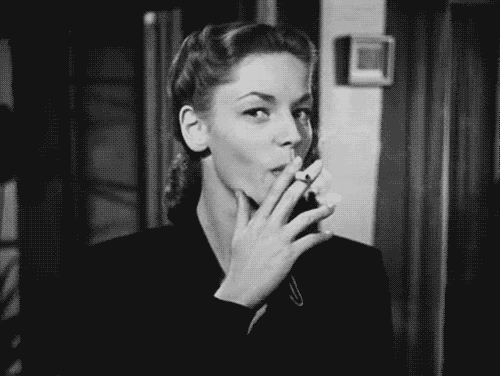 有沒發覺Bacall的硬照總愛側身側頭,眼神也傾斜的? 光是撇個眼神就非常性感,一副橫眉冷對千夫指的樣子。而她擺出這樣的姿態可不是因為她真的很剛烈,實際上我覺得她蠻小鳥依人。