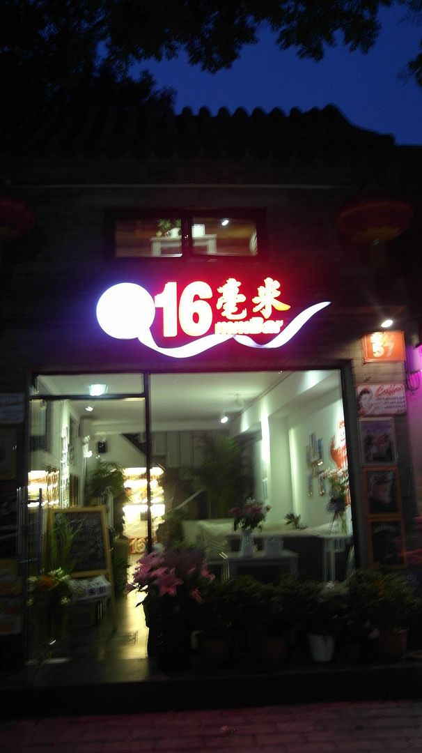 另一件高興的事,在南鑼鼓巷看到這間小酒吧,16毫米。我只在店外窺視牆身,滿是電影鐵皮畫。希望有誰代我去,或者下次再會。