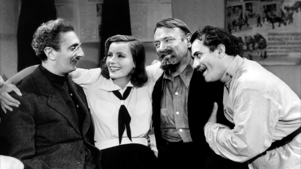 說回正題,Ninotchka是一部開蘇共玩笑的電影,卻不像冷戰時期的電影嚴肅,對蘇聯的嘲諷都是點到即止。劇情是說Garbo演的蘇聯女幹部,奉命前往巴黎調查三名手下出售一批沙皇時代珠寶的工作進度。這三名手下顯然早已被資本主義誘拐了,享受著紙醉金迷的物質生活。後來Garbo的鐵幕最終被花花公子Leon融化,投向資本主義懷抱。據說港產片表姐你好嘢也是取材自此,也甚為有趣。